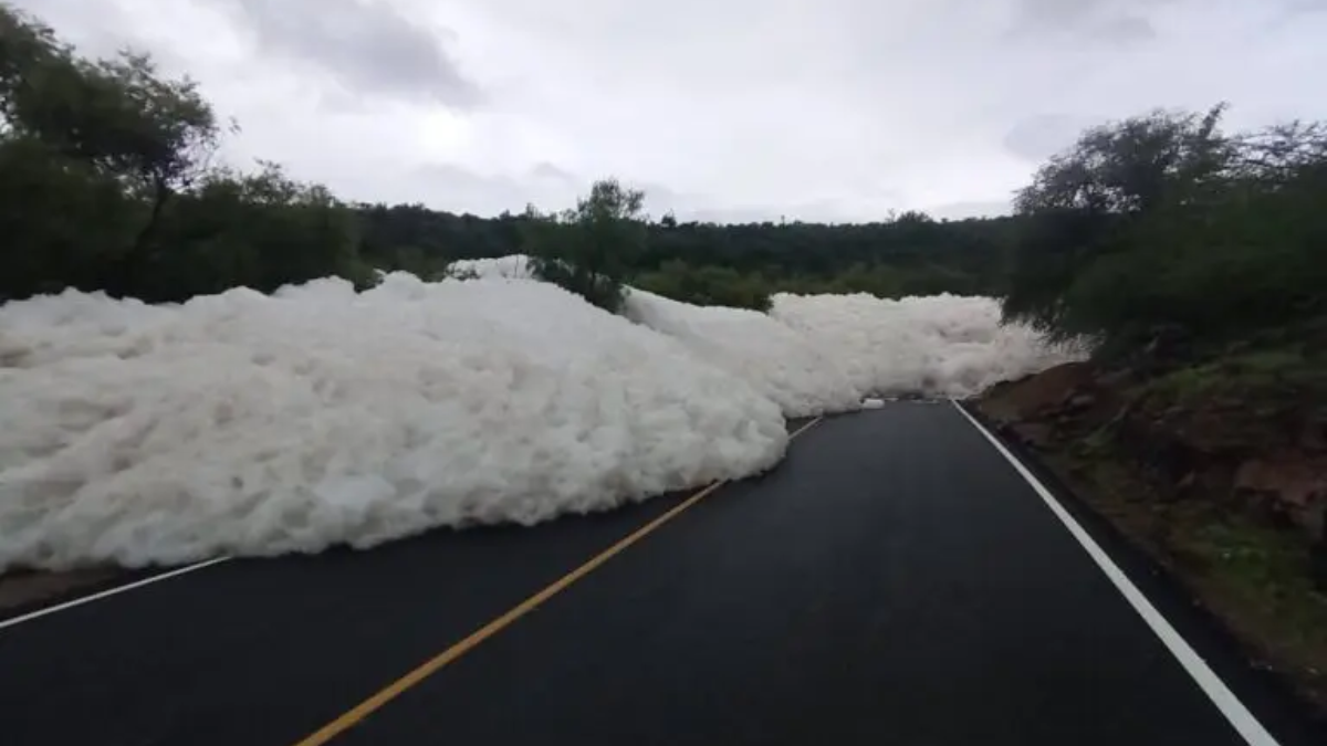 El fenómeno, que fue captado en imágenes y videos por usuarios en redes sociales, ha sido calificado como una muestra alarmante de contaminación y descuido ambiental. La espuma, de apariencia blanca pero de origen insalubre, se ha desbordado sobre el asfalto, impidiendo el paso vehicular y afectando la visibilidad.